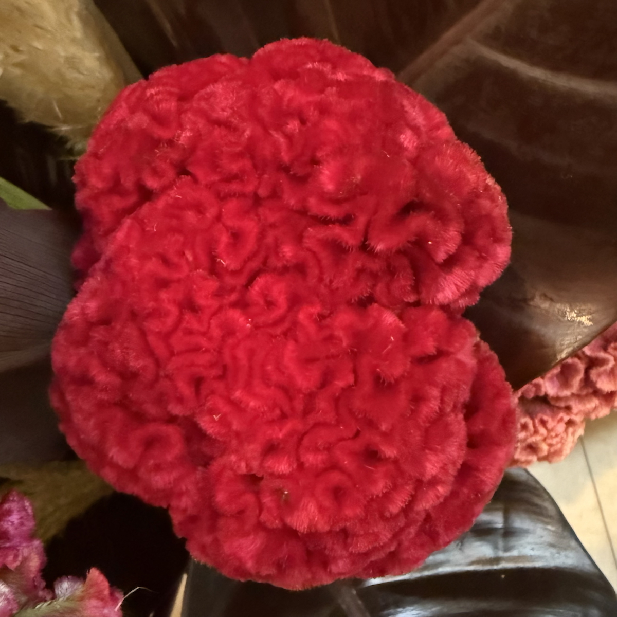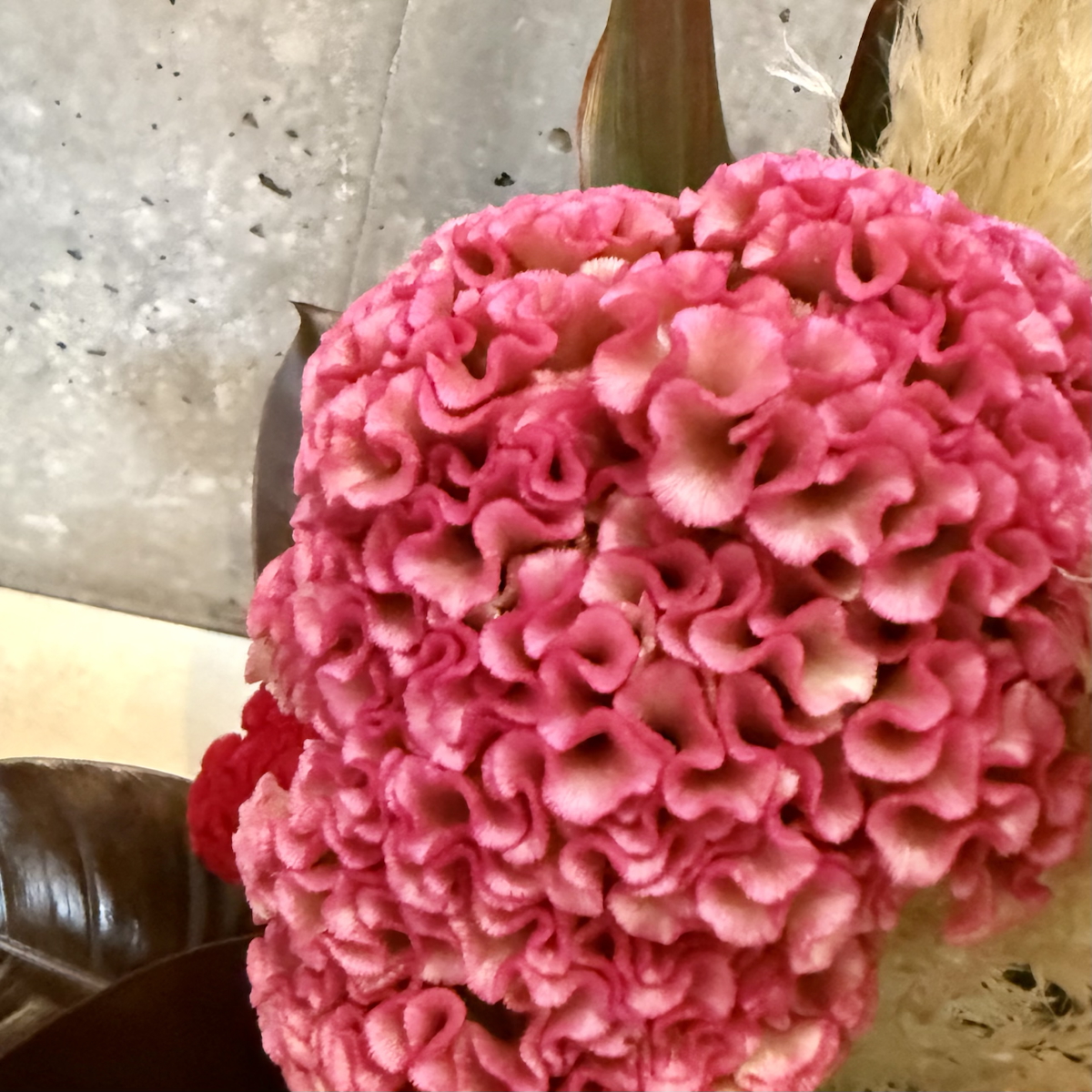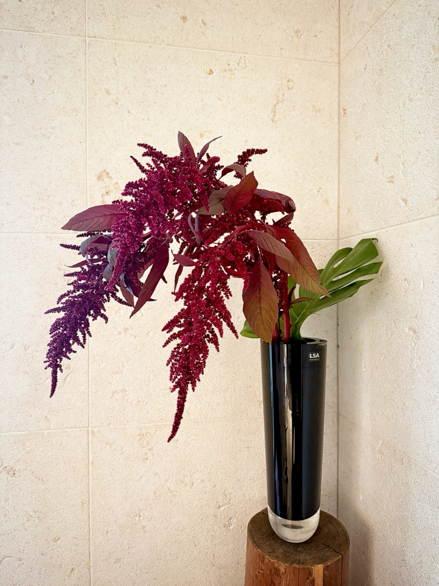 パンパス、ケイトウ、ブラックコンゴ、ドラセナ、アンスリウム