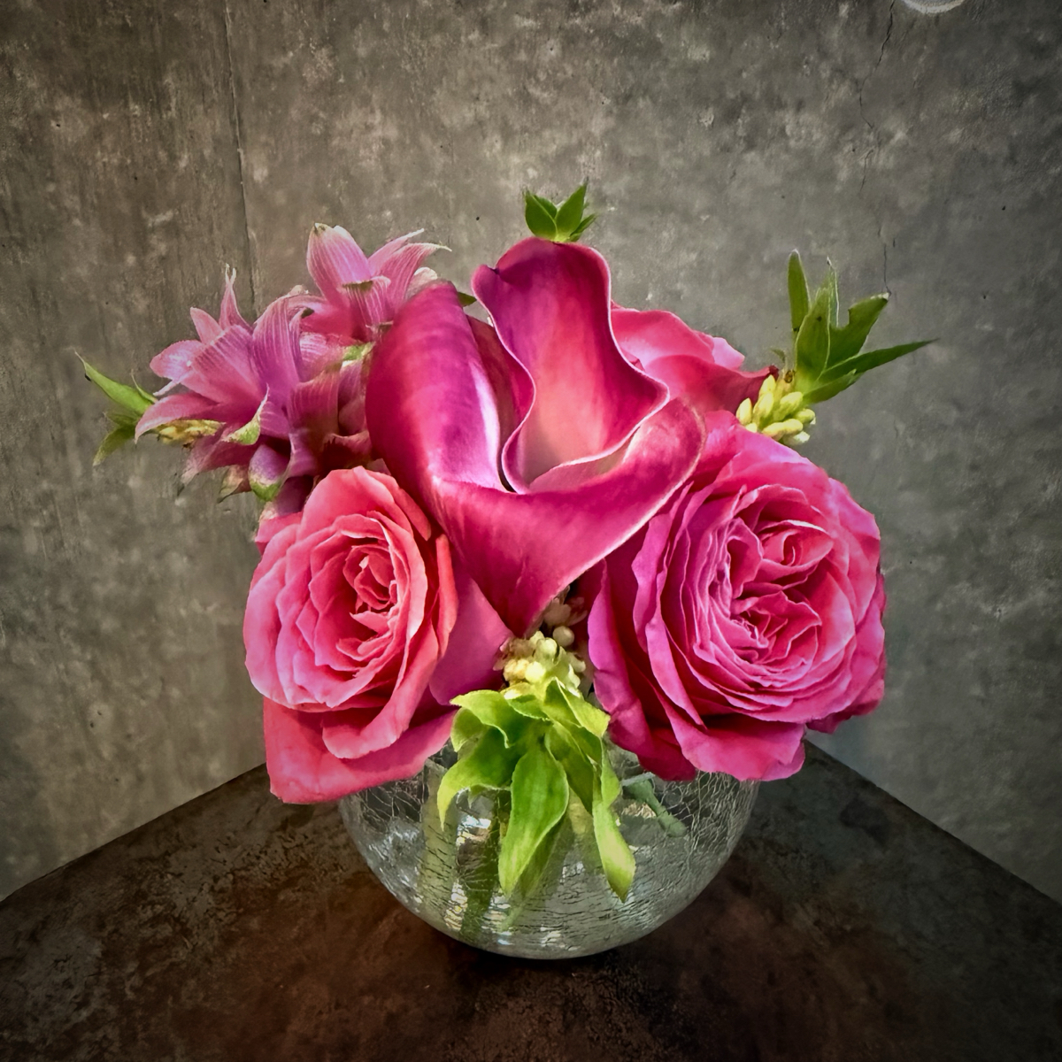 ここはパイナップルリリー以外のクルクマ、バラ、カラーが目立ちますが、パイナップルリリーがアクセントになってます。
