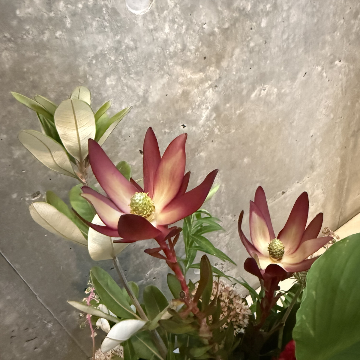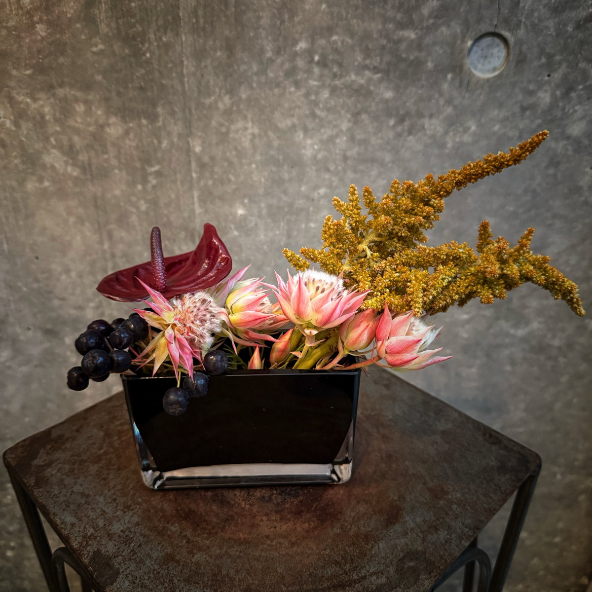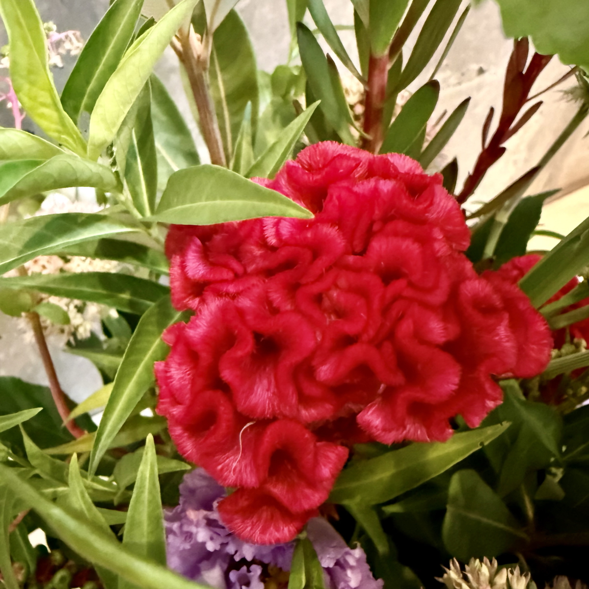 ケイトウ、セルリア、アンスリウム、チョコレートベリー