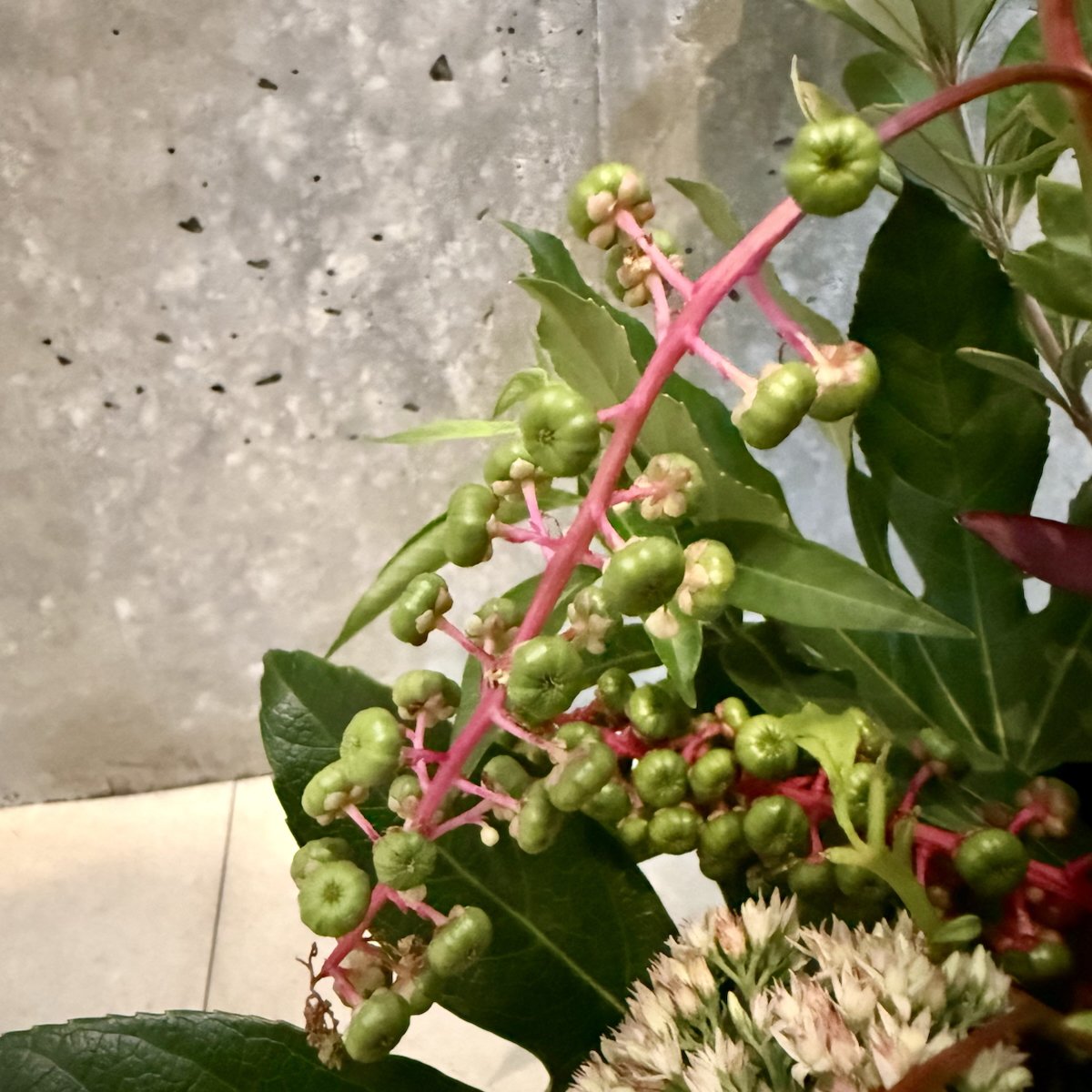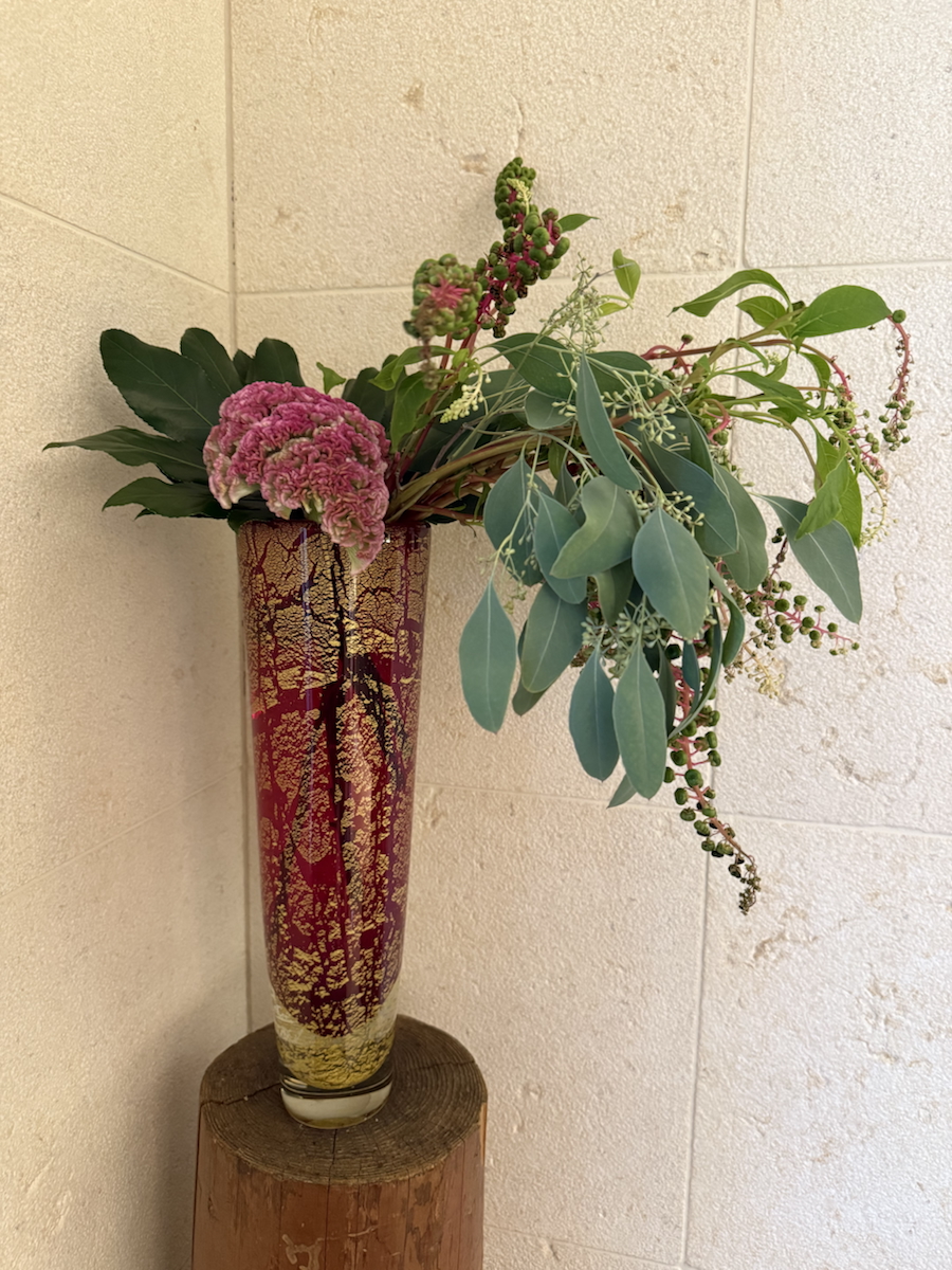 ケイトウ、ヤマゴボウ、ヤツデ、ユーカリ