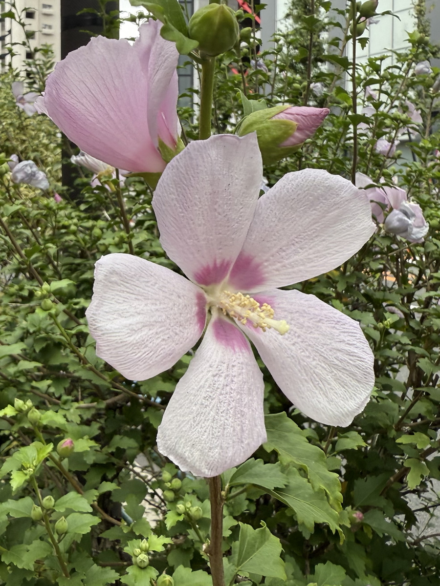 最初は可愛いピンク色のムクゲで別名ハチスと言います。