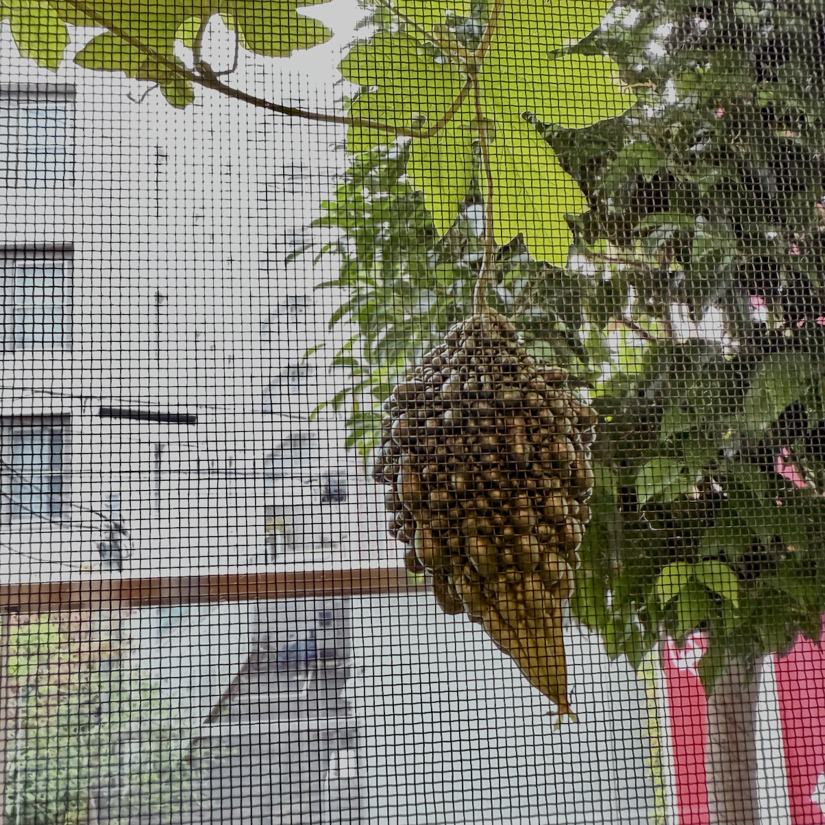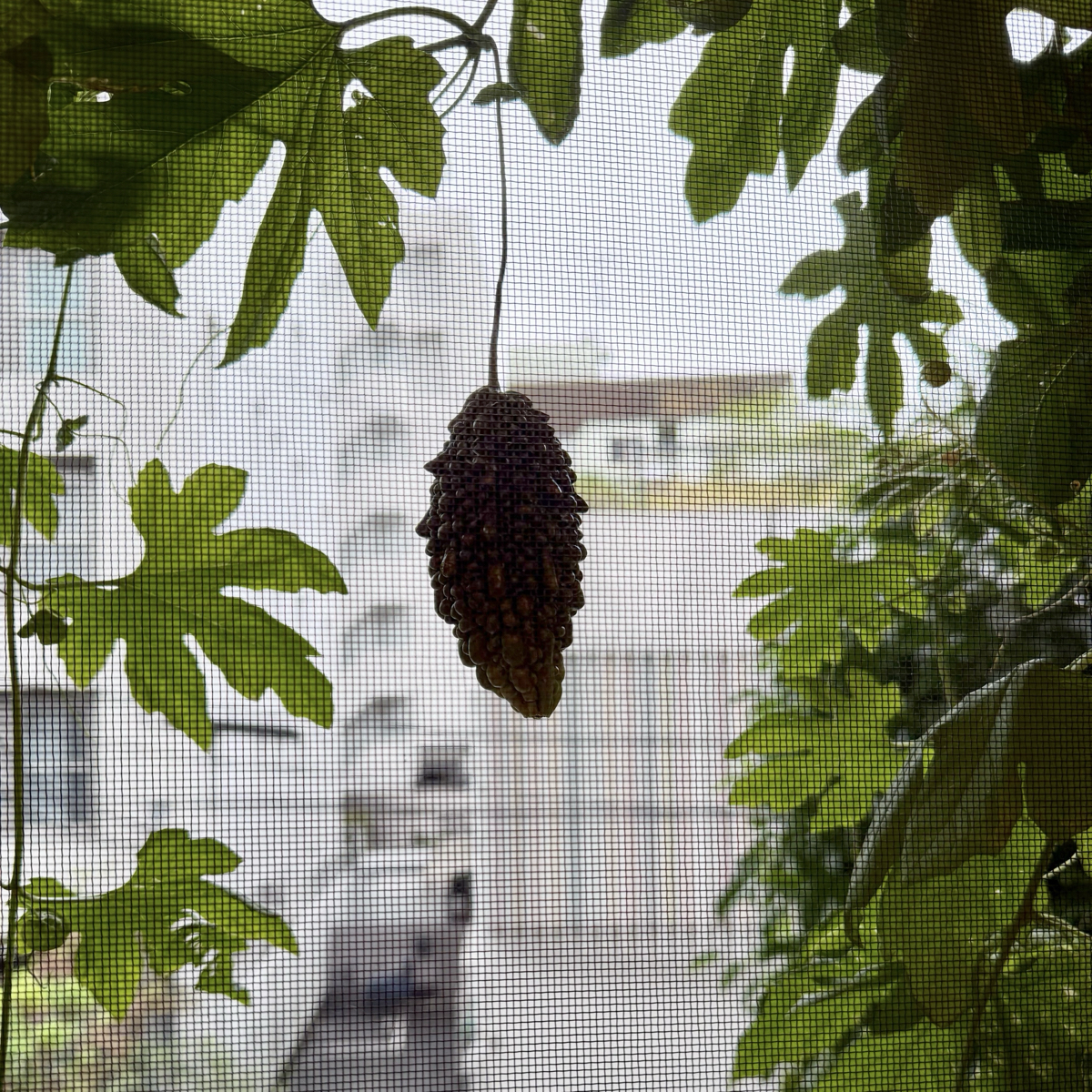 こんな気候でもいい事もあります。エルグのテラスにあるゴウヤが急に出来はじめています。