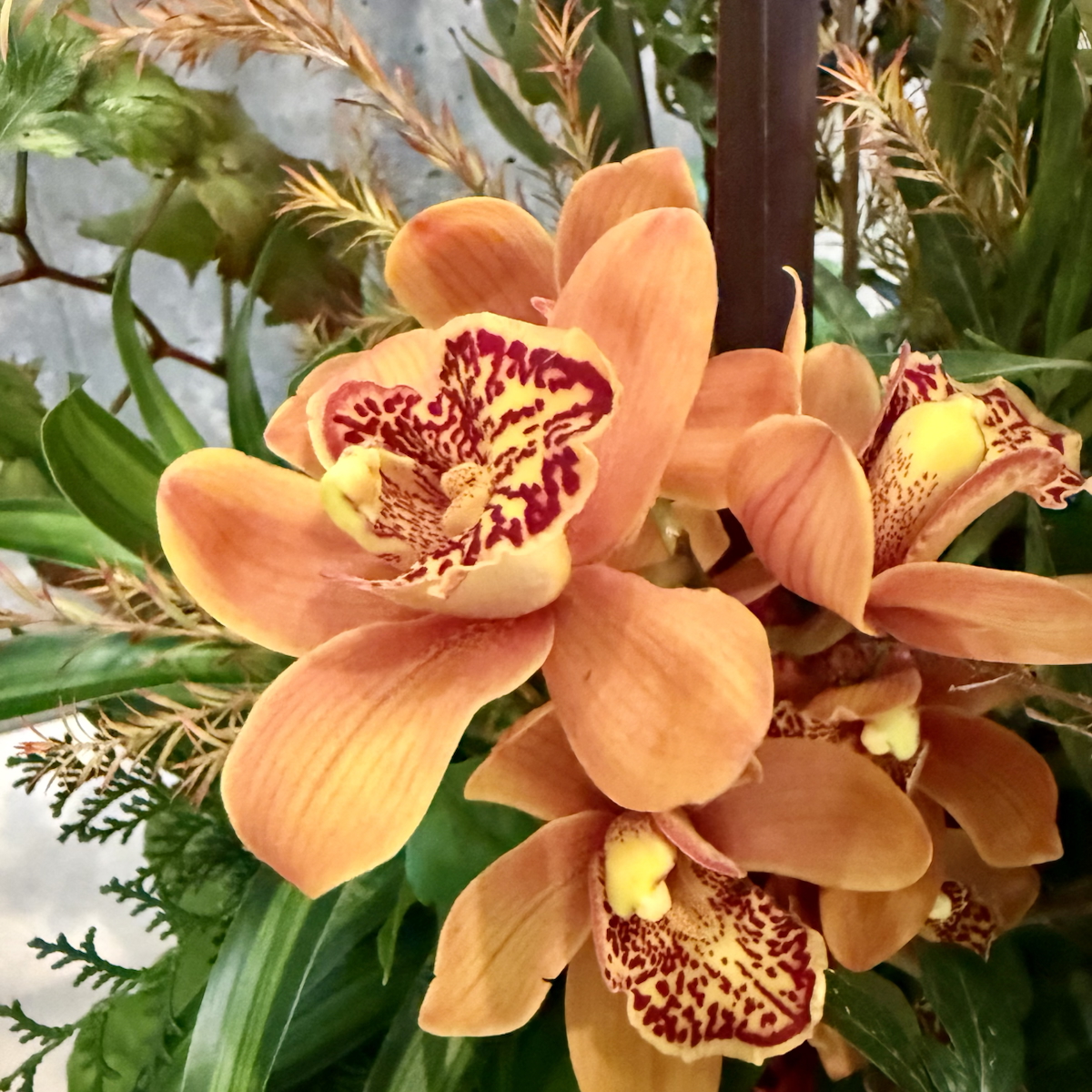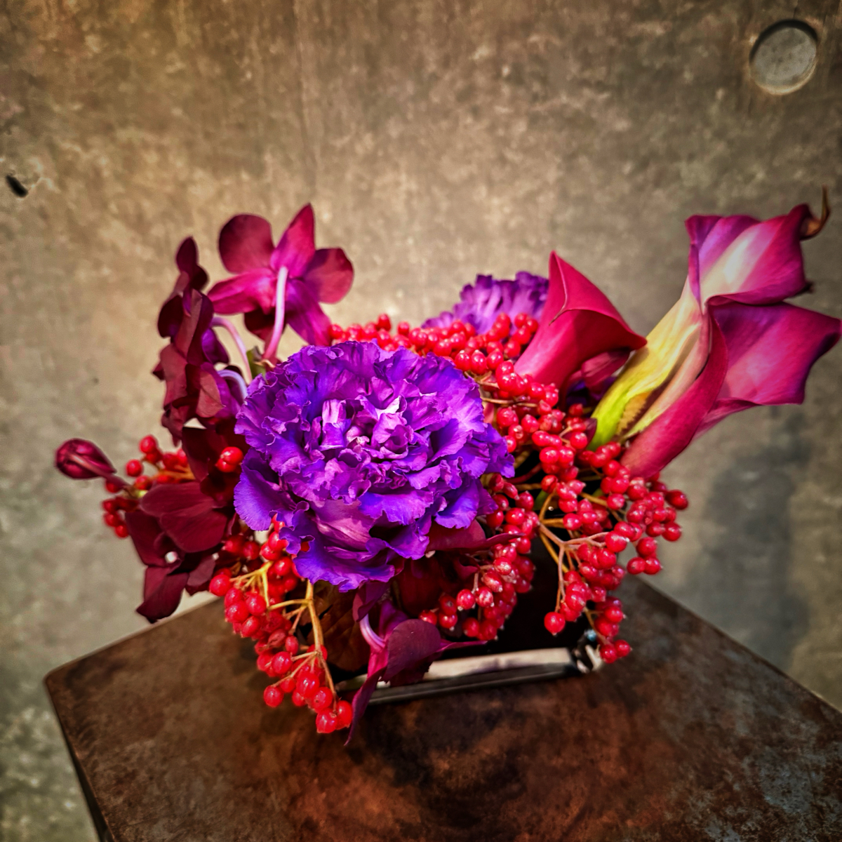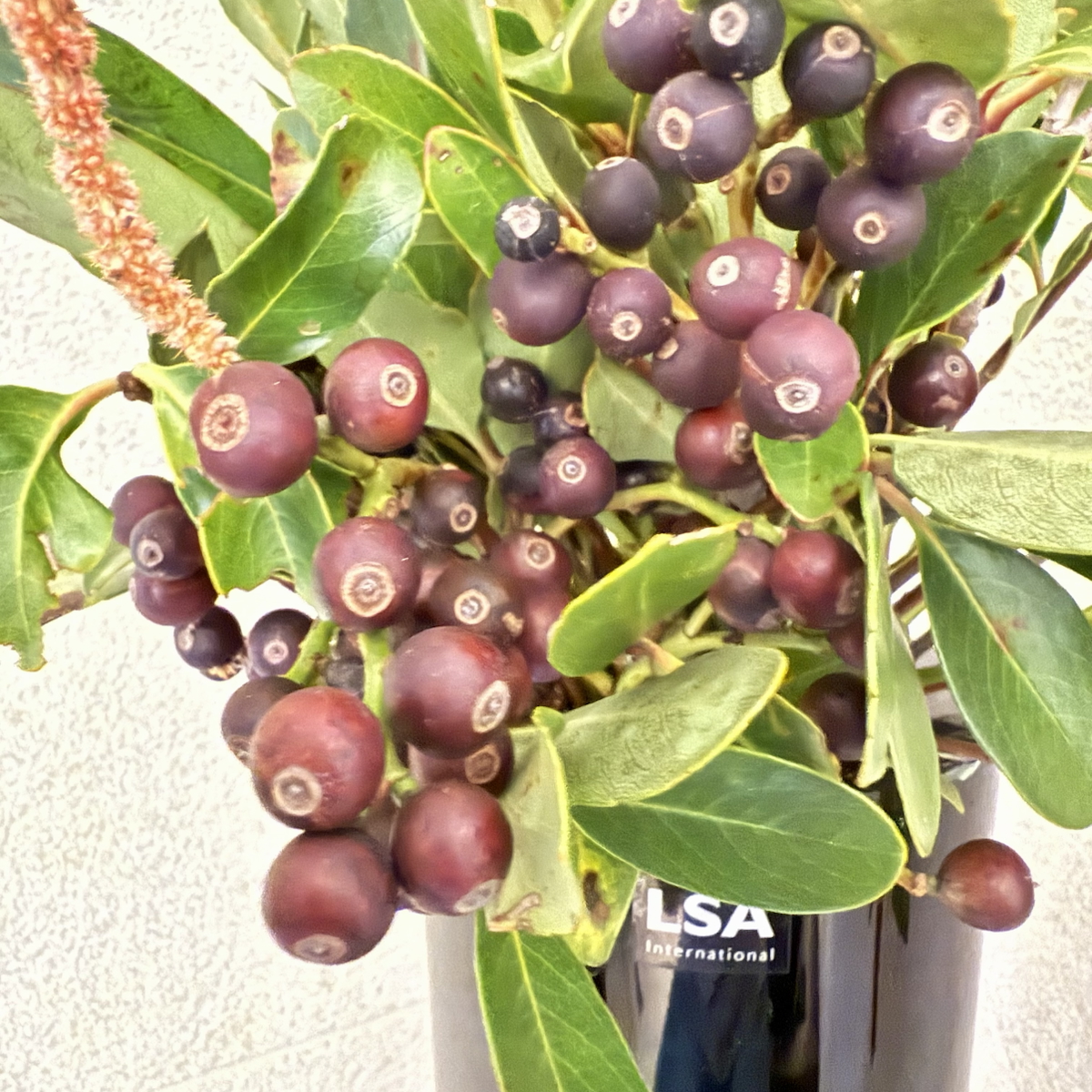 マム、ニューサイラン、メラリューカ、風船トウワタ、石化鶏頭、ドラセナ、クッカバラ、シャリンバイ、桐南天、シンビジウム、キイチゴ、レモンリーフ、ヒバ、ジンジャー、ピンクッション