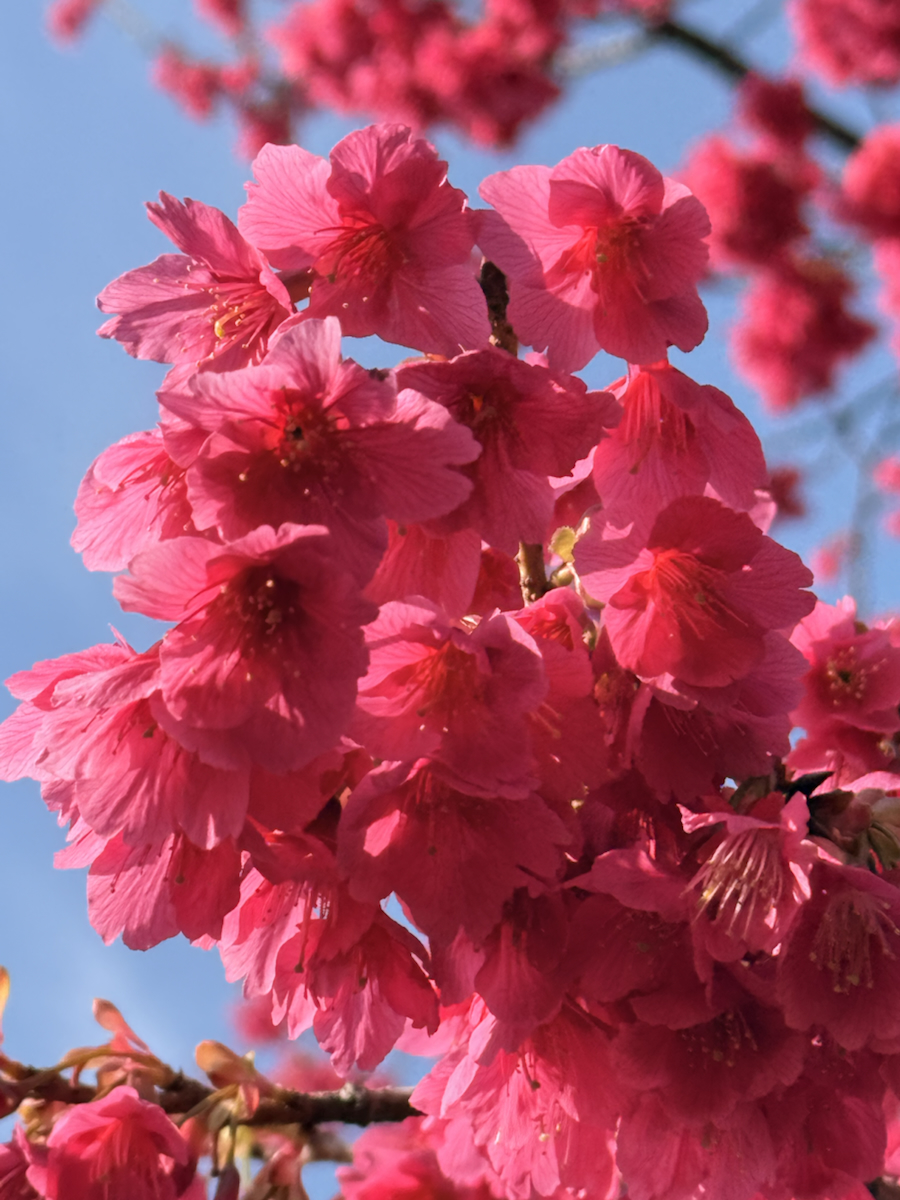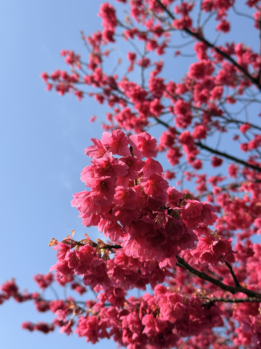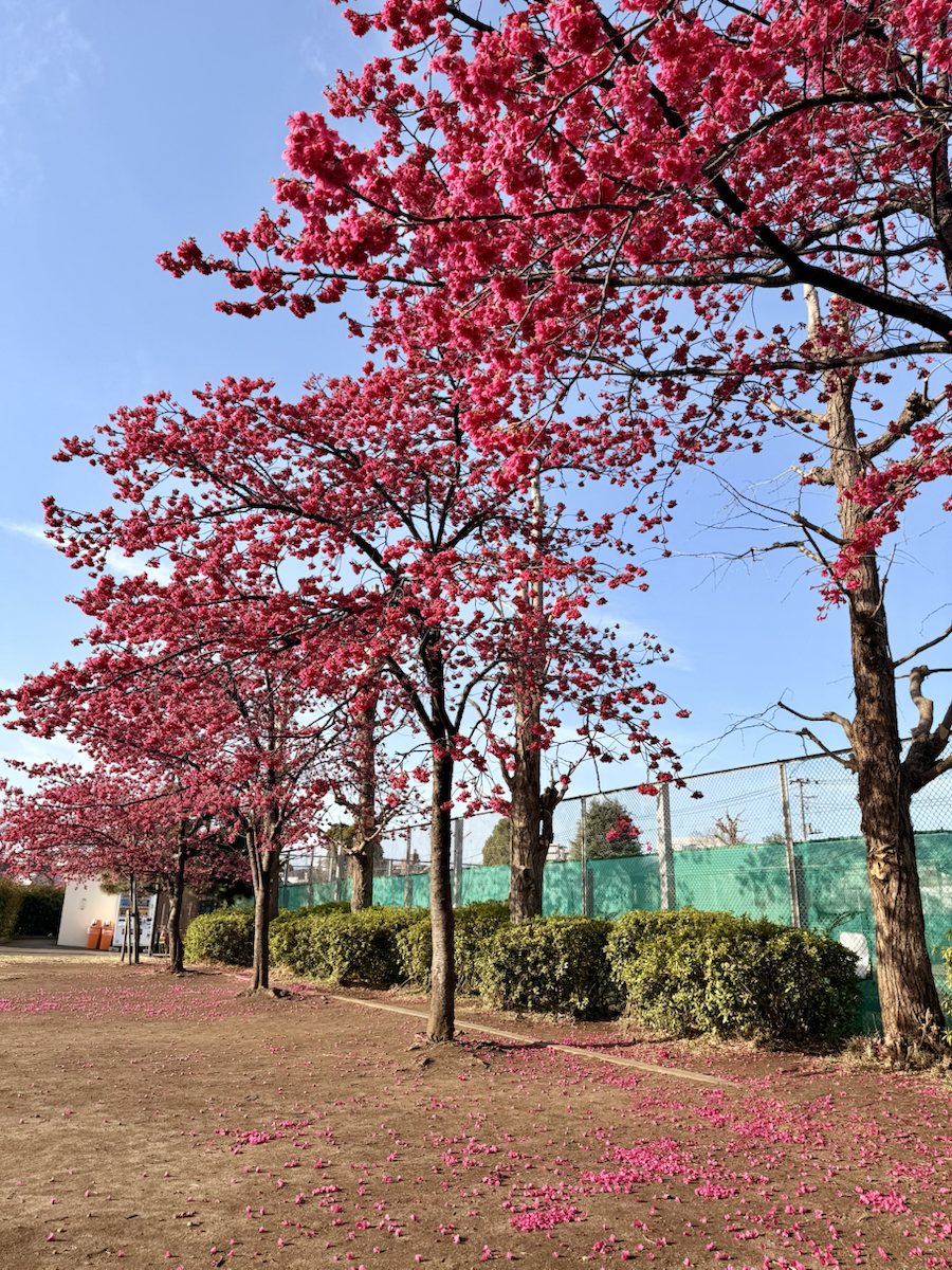 今回も最後は桜です。名前は紅房ザクラ!普通の桜より赤いのが特徴です。花の蜜が美味しいのか、一番いい時に鳥がやってきて、花の蜜を吸って地面に落としてしまいます。