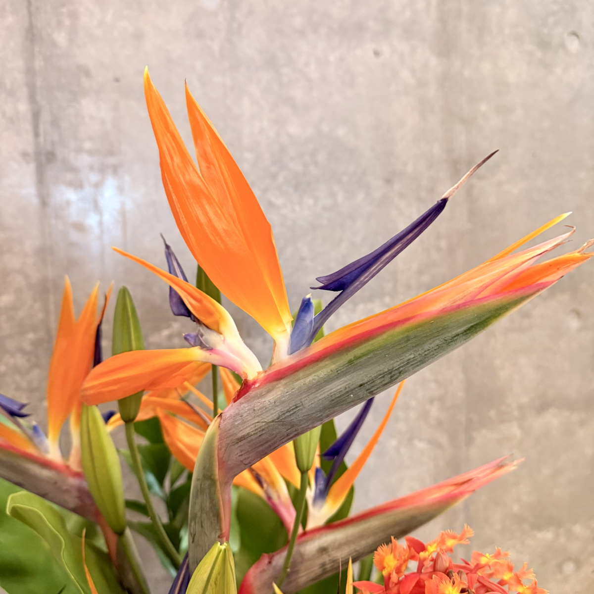 最初はストレリチア(極楽鳥花)です。鳥のような鮮やかな花と大きな葉が特徴です。