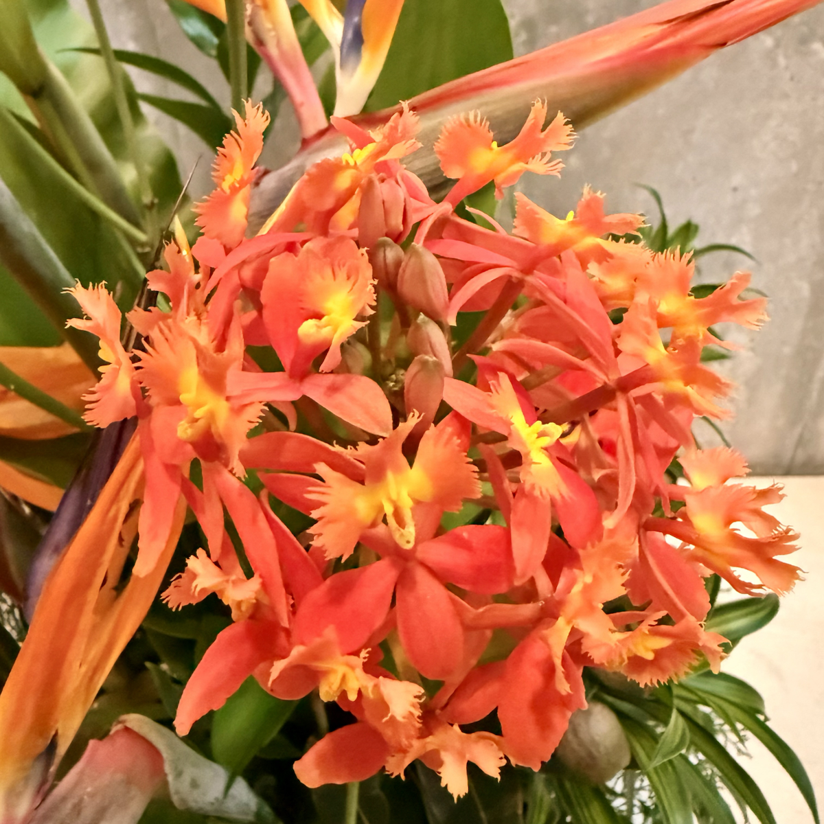 次もオレンジ色の花でエピデンドラムと言う洋ランです。花言葉は「可憐な恋」です。