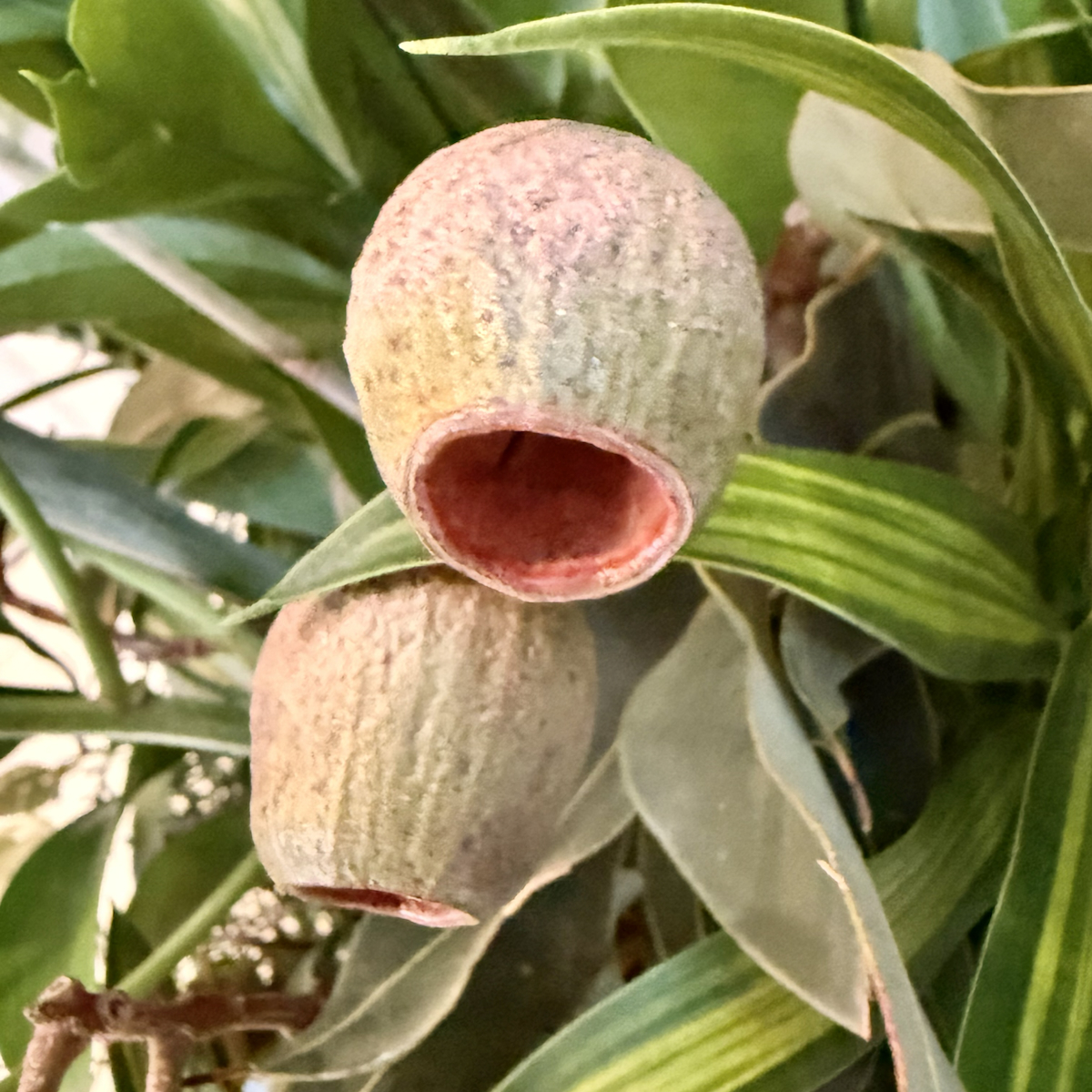 この実はユーカリの実です。自己防衛のため「青酸」という猛毒をもっています。