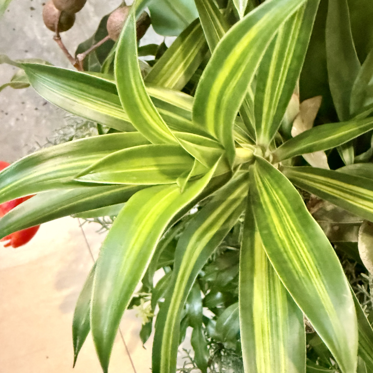 これはドラセナです。幸福の木の別名を持つ人気の観葉植物です。