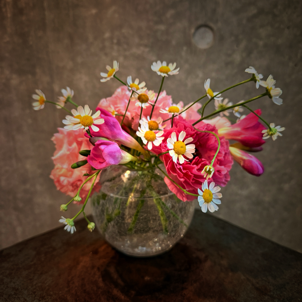 ラナンキュラス、トルコキキョウ、マトリカリア、フリージア